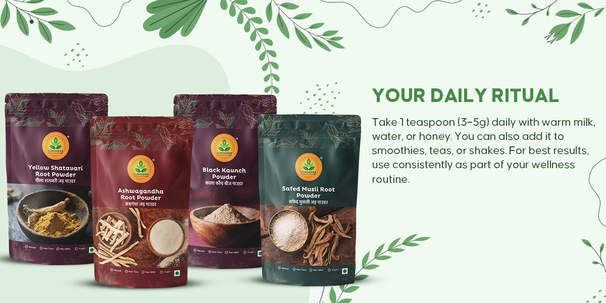 Curoherb Combo - Aswagandha, Safed Musli, Black Kaunch, Yellow Shatavari (Powder)